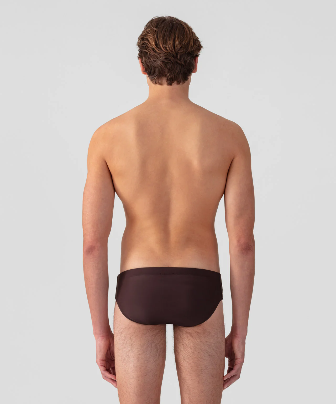 Inspired by the cult Brazilian water polo briefs of the early 80s. Made in an extra-thick but quick-drying Italian-made polyamide for optimized silhouette and guaranteed fit swim after swim. Breathable micro-mesh lining. Ideal for frequent pool use. Elastic waistband with interior drawstring. Featuring the double black-lacquered RD signature eyelets.