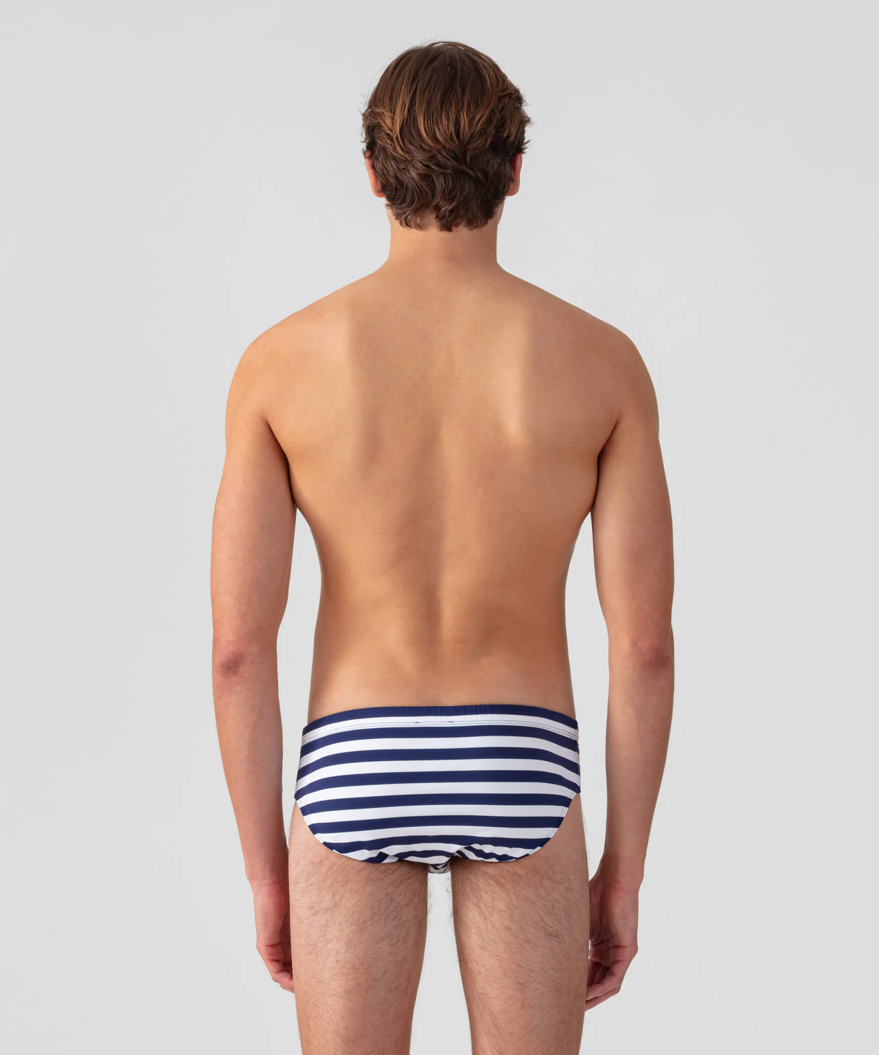 Inspired by the cult Brazilian water polo briefs of the early 80s. Made in an extra-thick but quick-drying Italian-made polyamide for optimized silhouette and guaranteed fit swim after swim. Breathable micro-mesh lining. Ideal for frequent pool use. Elastic waistband with interior drawstring. Featuring the double black-lacquered RD signature eyelets.