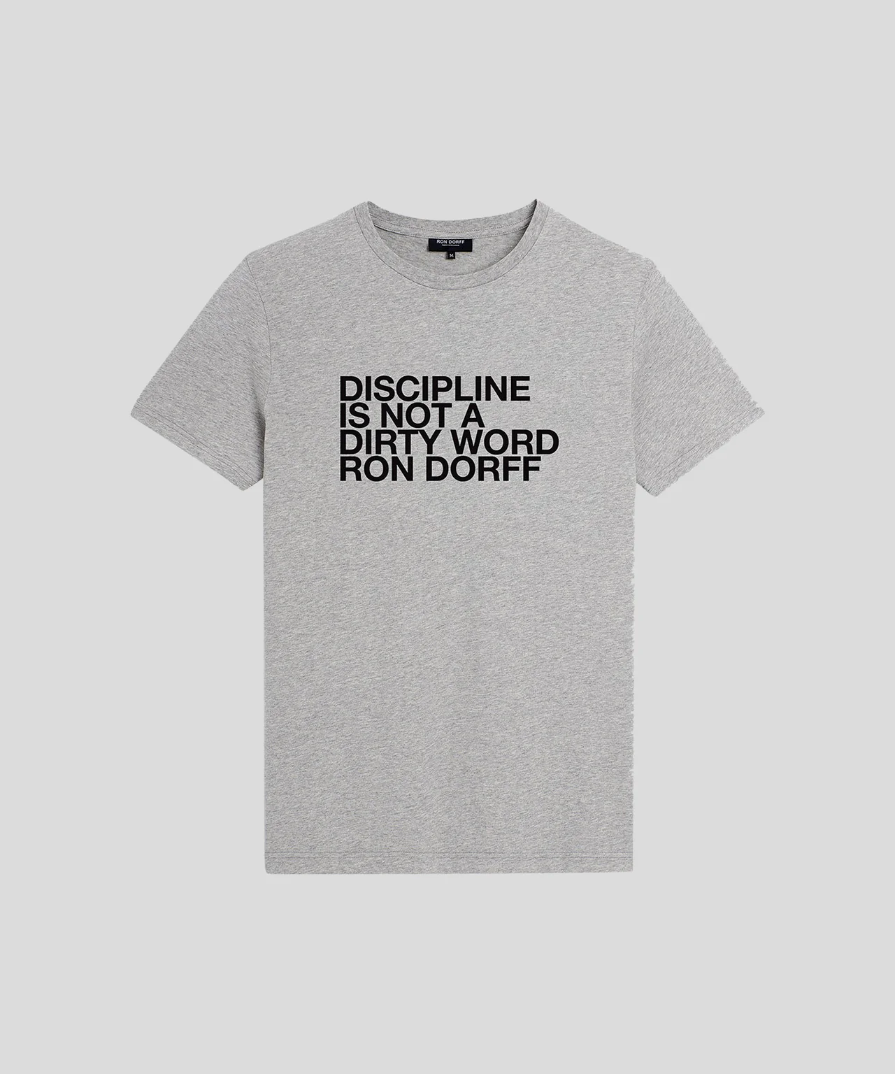 The classic RON DORFF t-shirt with "DISCIPLINE" chest screen print. Designed with a slightly tapered fit and cut in a premium 100% organic cotton jersey. Crew neck. Finished with ribbed collar. Pre-washed for minimum shrinkage.