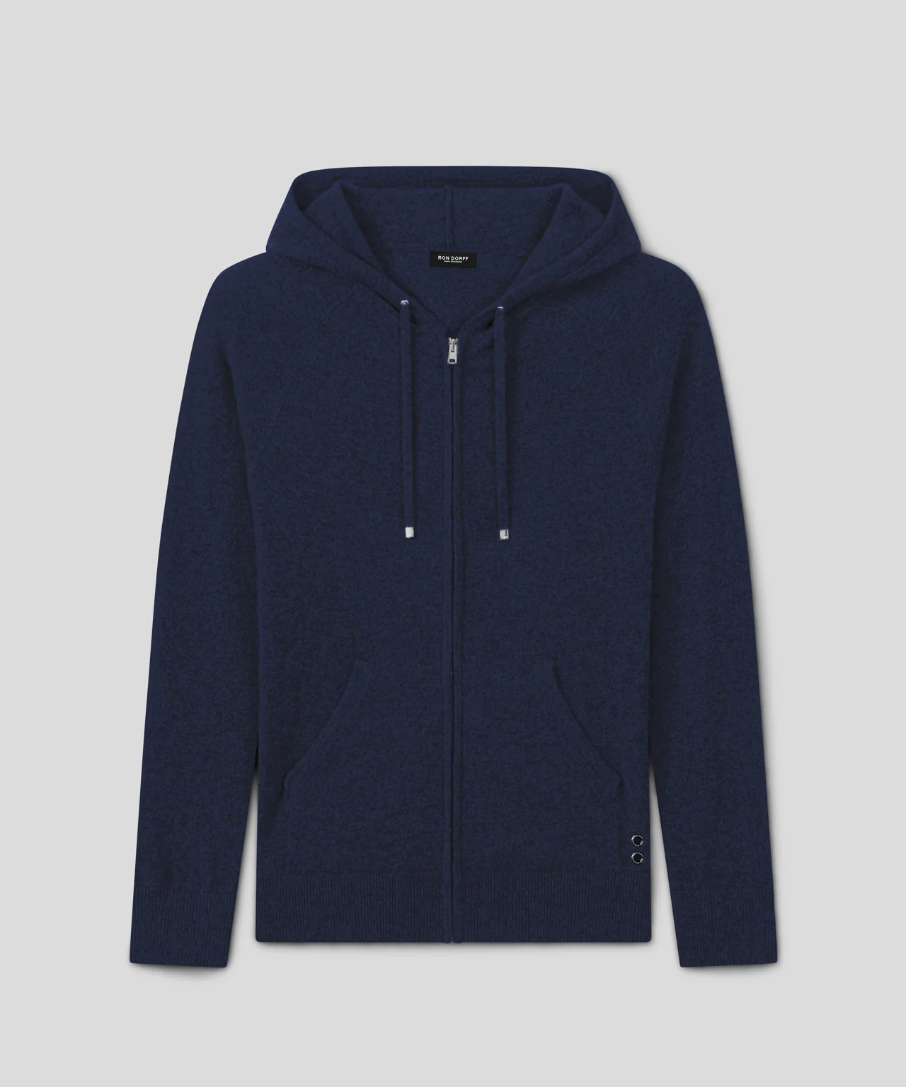 The classic zipped pullover hoodie with front pockets upgraded in a luxurious, 100% ultra-soft, breathable, Pure Sports Cashmere. Designed with a slightly tapered fit. Drawstrings with RD engraved metal tips for perfect adjustment. Swiss-made, anti-tear zip with RON DORFF engraved puller. Finished with ribbed cuffs and waistband. Featuring the two discrete black-lacquered RD eyelets on the side.